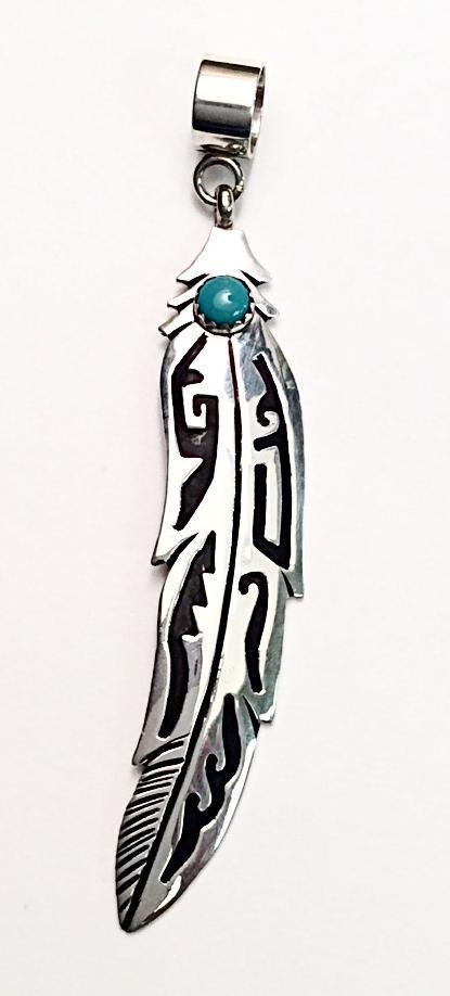 Home / PENDANTS / Navajo T-R Singer Stamped Feather Pendant with Turqouise Stone Navajo T-R Singer Stamped Feather Pendant with Turqouise Stone$100.00 Navajo T-R Singer Stamped Feather Pendant with Turqouise Stone quantity Add to cart SKU: R18-PD134 Category: PENDANTS Tags: Feather, T R Singer Description Description 1/2″ x 3/8″ L Related products PENDANTS Navajo Ben Begay Silver Medicine Wheel with Feather Pendant PENDANTS Navajo Ben Begay Large Silver Feather with Turqouise Stone EARRINGS Navajo Fannie Begay Silver Feather Earring with TQ Stone EARRINGS Navajo Ben Begay Silver Feather Earring