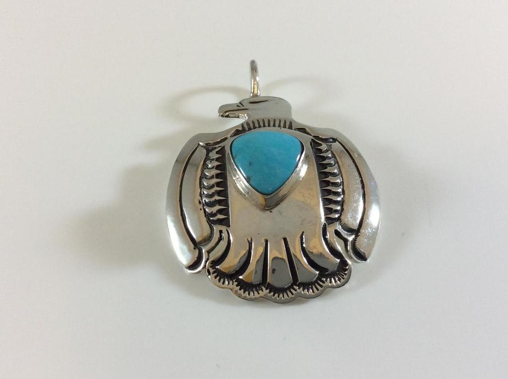 Home / PENDANTS / R B Kingman Eagle Pendant R B Kingman Eagle Pendant$75.00 R B Kingman Eagle Pendant quantity Add to cart SKU: R18-PD152 Category: PENDANTS Tag: Eagle Description Description 1 3/4″ L Related products PENDANTS Navajo – Alonzo Mariano Kokopelli Pendant with Turquoise Stone EARRINGS Turquoise Eagle & Feather Swing Earrings PENDANTS Navajo – Jan Mariano Oval Turquoise Twist Wire Pendant PENDANTS Navajo – Jan Mariano Small Oval Opal Pendant with Twist Wire