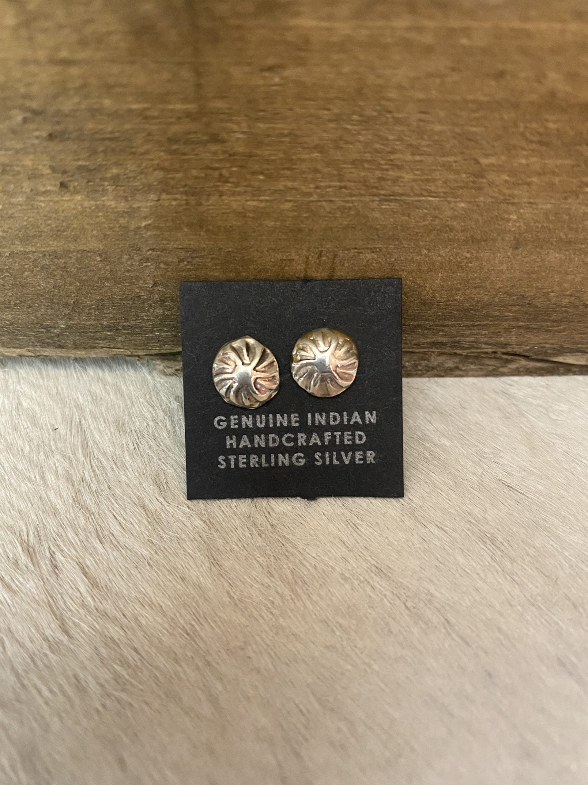 Home / EARRINGS / Small Stamped Concho Stud Earrings Small Stamped Concho Stud Earrings$26.00 Small Stamped Concho Stud Earrings quantity Add to cart SKU: R20-E41 Category: EARRINGS Tags: Concho, SILVER, Stud Related products EARRINGS Zuni Mary Ann Neha Multi Color Inlay Stud Earrings EARRINGS Zuni Anderson Kaamasee Opal Stud Earrings EARRINGS Zuni Smith Cachini Coral Stud Earrings BELTS / BUCKLES /BOLOS Navajo Carson Blackgoat Stamped Concho Belt Buckle