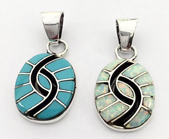 Home / PENDANTS / Zuni Amy Wesley Oval Turquoise or Opal Inlay Pendant Zuni Amy Wesley Oval Turquoise or Opal Inlay Pendant$275.00 Zuni Amy Wesley Oval Turquoise or Opal Inlay Pendant quantity Add to cart SKU: R18-PD176 Category: PENDANTS Tag: Amy Wesley Description Description 1 1/4″ x 5/8″ Related products PENDANTS Kingman Turquoise Oval Cabochon Design Pendant Top PENDANTS Loretta Smith Couture Naja PENDANTS Zuni Amy Wesley Turquoise Inlay Pendant with Dangles PENDANTS Navajo – Alonzo Mariano Kokopelli Pendant with Turquoise Stone