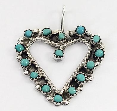 Home / PENDANTS / Zuni Dave Pincion Turquoise Heart Pendant Zuni Dave Pincion Turquoise Heart Pendant$73.00 Zuni Dave Pincion Turquoise Heart Pendant quantity Add to cart SKU: R18-PD224 Category: PENDANTS Tags: Dave Pincion, Heart Description Description 1″ x 7/8″ Related products PENDANTS Mike Smith Stardrop Couture Squash Blossom Pendant PENDANTS Kingman Turquoise Pair Cabochon Design Pendant Top RINGS Zuni Tammy Wyaco Single Stone Heart Ring 5/16″ x 5/16″ PENDANTS Navajo Shawn Cayatineto Spiney Oyster Stamped Heart Pendant