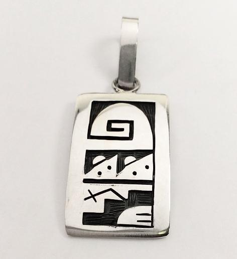 Home / PENDANTS / Zuni Frank Lahaleon Silver Tribal Pendant Zuni Frank Lahaleon Silver Tribal Pendant$195.00 Zuni Frank Lahaleon Silver Tribal Pendant quantity Add to cart SKU: R18-PD249 Category: PENDANTS Tag: Frank Lahaleon Description Description 2″ x 3/4″ Related products RINGS Zuni Frank Lahaleon Stamped Ring 1 3/16″ x 3/4″ PENDANTS Kingman Turquoise Pair Cabochon Design Pendant Top PENDANTS Navajo – Kevin Billah Silver Concho Style Pendant with Turquoise Stone PENDANTS Navajo – Johnathan Nez Contemporary Flower with Turquoise Stone